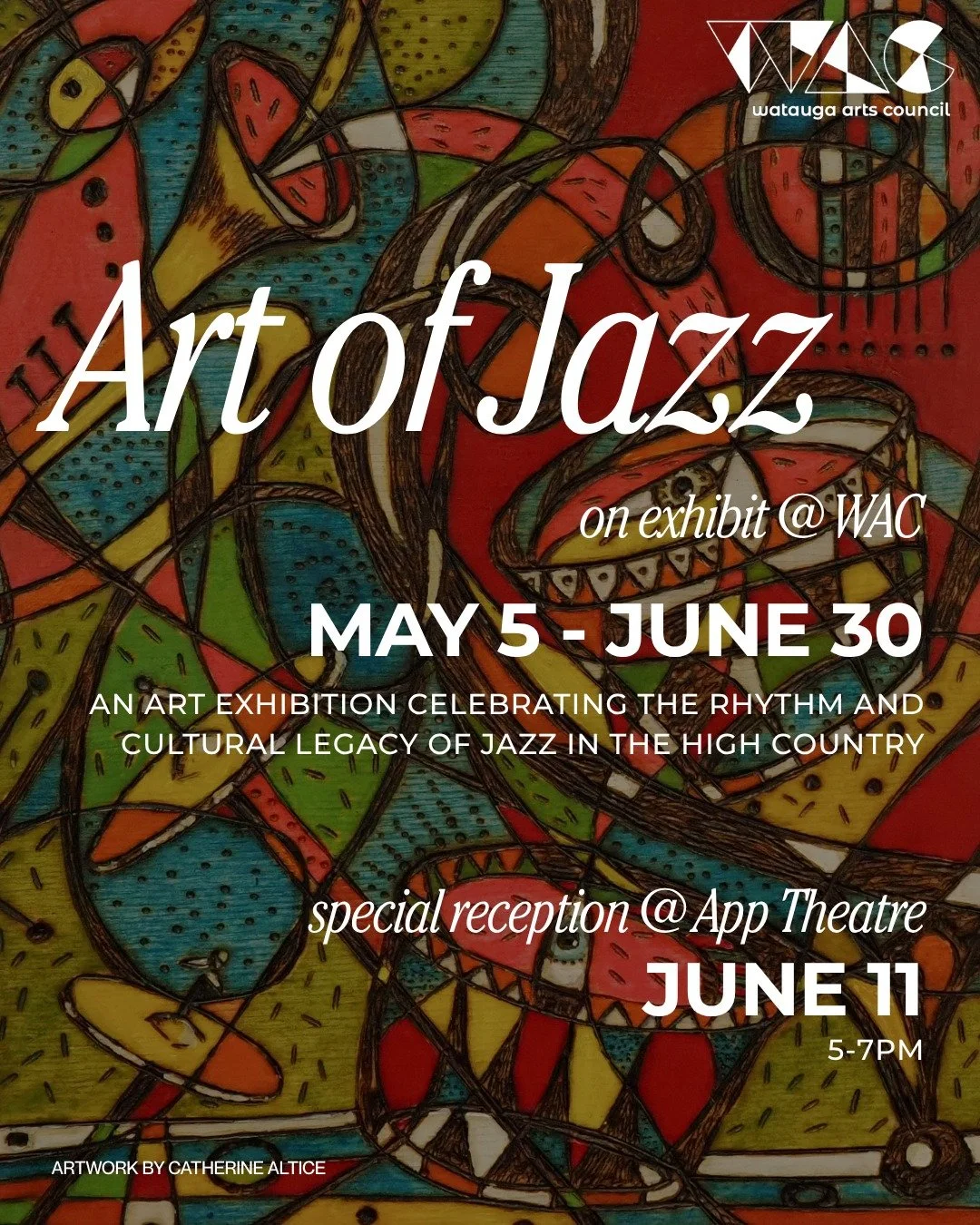 ART NEWS Apr 23, 2026 WAC Explores Jazz Through Art in New Exhibition Opening May 5 Apr 23, 2026 A special new exhibit is coming to WAC… Learn more! Read More → Apr 23, 2026 Apr 23, 2026 May’s First Friday is Here! Apr 23, 2026 Find out what all is happening in Downtown Boone on May 1st! Read More → Apr 23, 2026 Mar 31, 2026 Apr. 2026 | Arts Opportunities Newsletter Mar 31, 2026 Check out our most recent newsletter on important updates and arts opportunities in the region for April! Read More → Mar 31, 2026 Mar 11, 2026 Deadline Extended: The Art of Jazz Exhibition Mar 11, 2026 The Art of Jazz has extended its Call for Art to March 31st! Apply today! Read More → Mar 11, 2026 View fullsize View fullsize View fullsize View fullsize View fullsize View fullsize View fullsize View fullsize View fullsize View fullsize View fullsize View fullsize