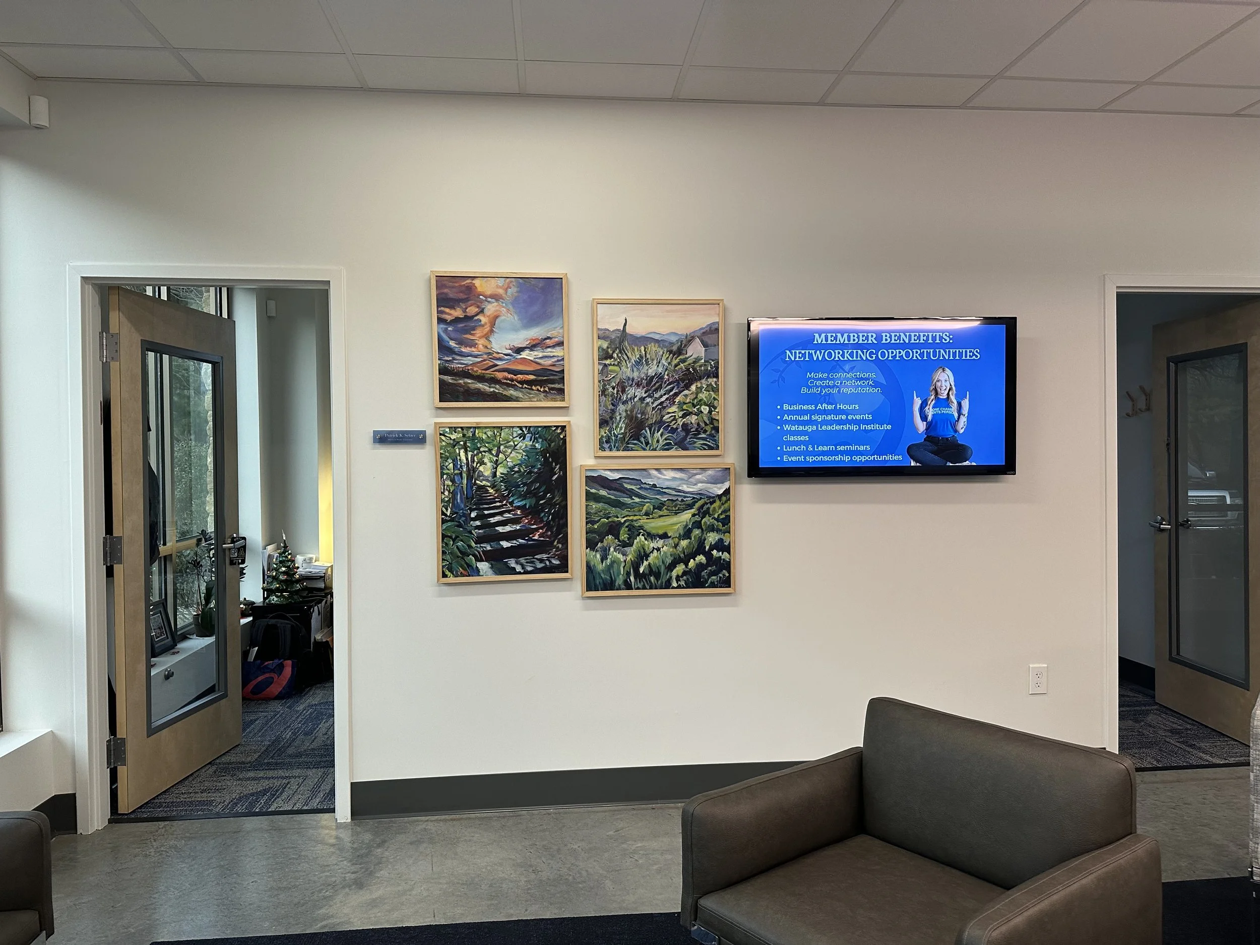 Connecting local artists with community spaces through curated, external exhibitions. Arts Placement Seby Jones Cancer Center Boone Chamber of Commerce